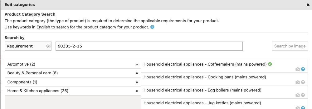 Based on the information you provide, our regulatory team will determine the product category for your product. For product categories that are not yet in our database, we will do our utmost to find all relevant legislation as soon as possible.