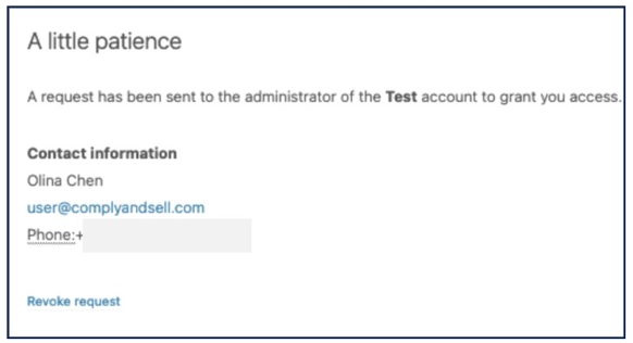 3. Your company administrator will receive an email requesting for access to the existing company account.