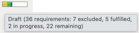 - Hover over the Status bar, a tool tip will show the current requirement fulfilment of the shared technical file.