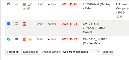 - At the bottom of your screen you choose the action Add from clipboard and click Execute.