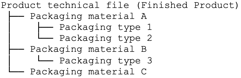 - Further packaging technical files can be added to the BOM in case of multiple articles in the product technical file by starting at step 4 again.